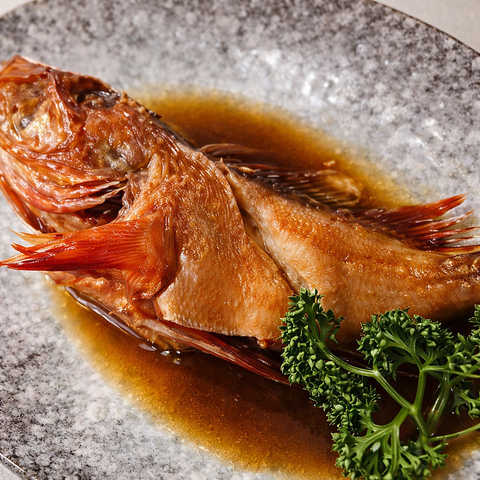 脂がたっぷりと乗った高級魚のキンキを、特製ダレでふっくらと煮付けました。箸を入れるとホロリと崩れる身は、口の中でとろけるような濃厚な旨味が特徴です。煮汁の香ばしい香りが食欲をそそります。贅沢な大人の時間を、心ゆくまでゆっくりとお楽しみください。