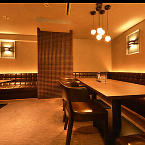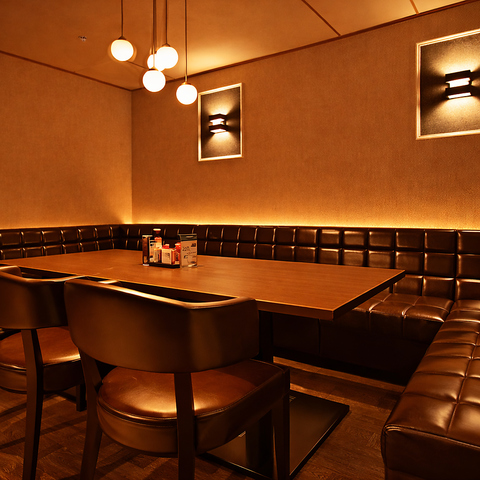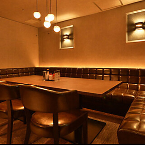 柔らかな橙色の照明が暖かく漏れる店内は、ゆったりとした時間が流れる大人の隠れ家です。ふかふかのソファ席は座り心地が良く、時間を忘れて語り合える特別な場所☆ご友人との飲み会や忘新年会などの各種宴会に最適です。また、8名以上でご利用の場合はカラオケも無料でご利用いただけますので、ぜひご活用ください。