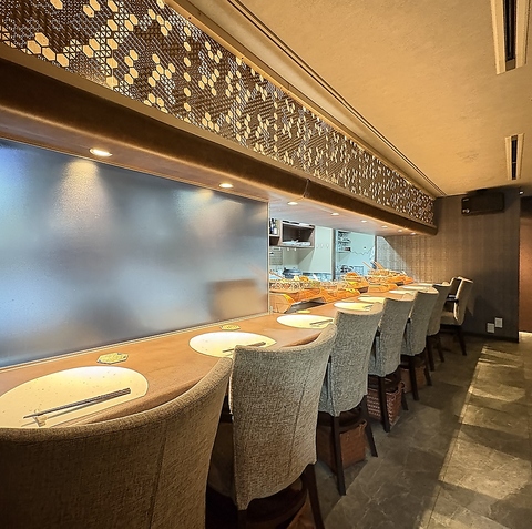 その日に提供されるおばんざいがずらりと並び、視覚的にも楽しめるカウンター席もご用意しております。スタッフとのコミュニケーションも取りやすい、人気のお席です。ゆとりを持った造りなので、寛いでお過ごしいただけます。おひとり様やデートでのご利用にもぴったりです。