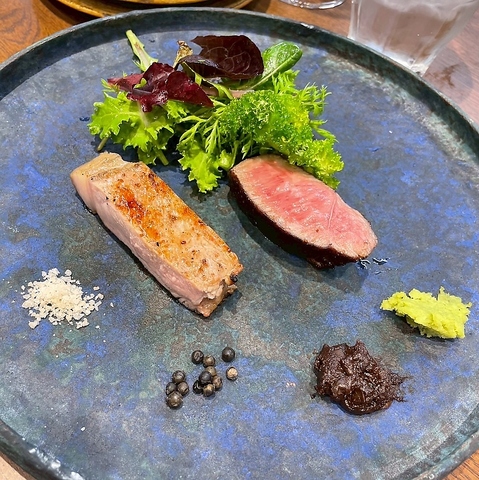 当店の強みである炭火料理の中でも、特に自信をもって提供する厳選された肉を使用した炭火焼。リゾートホテルの料理長経験を持つ実力派シェフが、絶妙な火入れで素材の旨みを最大限に引き出します◎+2000円(税込)でフィレに変更可能なコースもご用意。ソムリエ厳選の赤ワインと、最高のペアリングをお楽しみください♪
