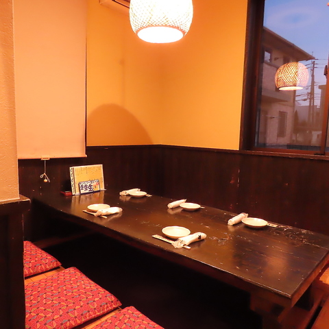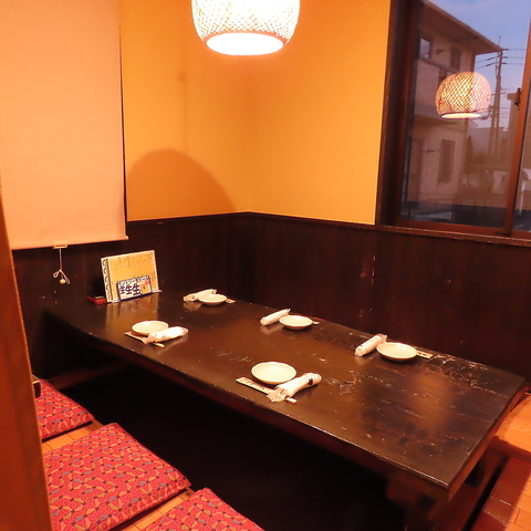 足をのばすことができる掘りごたつ席を完備。2名様からご利用可能です。寛ぎながらゆったりとしたひとときをお過ごしいただけます。デートなどにもぴったりです♪