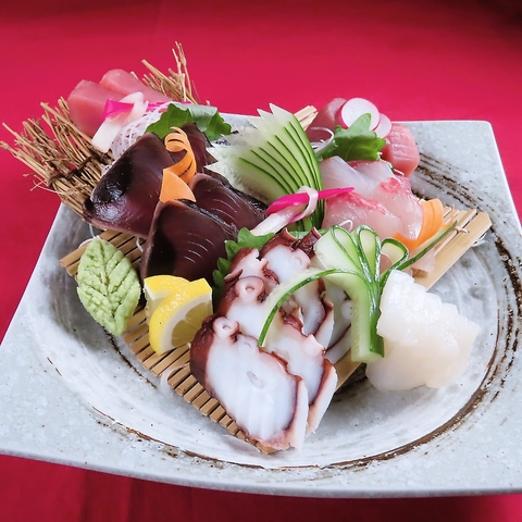 鮮度抜群の旬の魚介を職人が丁寧にさばいて提供いたします。綺麗に盛り付けたお刺身たちは、まるで宝石のよう。日本酒などど合わせてお楽しみいただくのがおすすめです。
