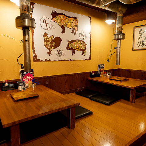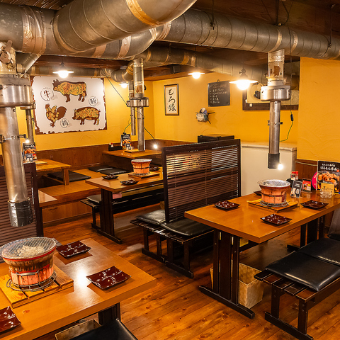 炭火焼きの美味しさを堪能できる特別な空間には、広々としたテーブルがあり、友人や大切な人との時間を心地よく過ごせます!全卓に煙の処理装置を備えているため、炭火七輪で食事を楽しむことができる場所です◎特別なイベントを企画するのにもぴったりの場所です♪
