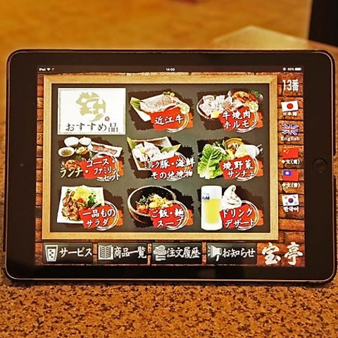 座敷が3部屋ございます。非接触・非対面でのオーダーができるタッチパネルを採用しております。「宝亭」の焼肉で、楽しいひとときを♪
