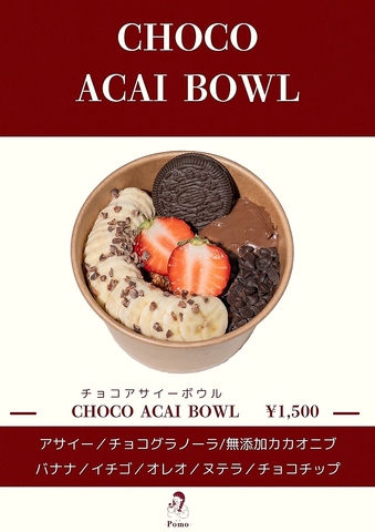 アサイー/チョコグラノーラ/無添加カカオニブ/バナナ/イチゴ/オレオ/ヌテラ/チョコチップ/はちみつ