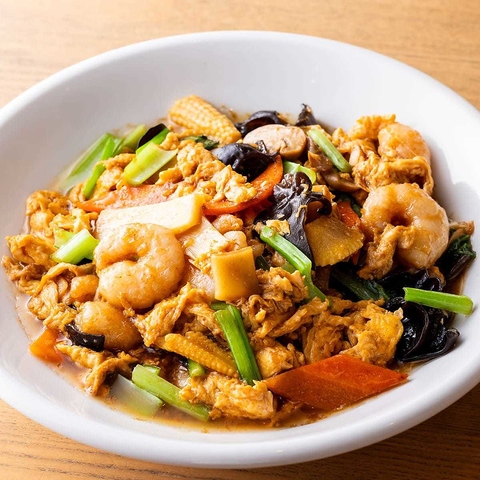四川料理以外にも幅広い定番中華をご用意!海老チリや黒酢酢豚、青椒肉絲、点心など、人気のメニューが勢揃い。リーズナブルでボリューム満点なのが当店の魅力です♪また、通常サイズの1.5倍を誇る「ジャンボ焼き餃子」も必見!お一人様でのお食事や、仕事終わりの食事にも最適なセットメニューも800円~ご用意♪