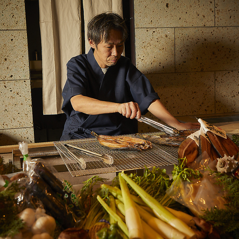 旬の魚介や野菜を素材のまま豪快に焼き上げるスタイル。こだわりの豊洲直送本マグロも自慢の逸品。