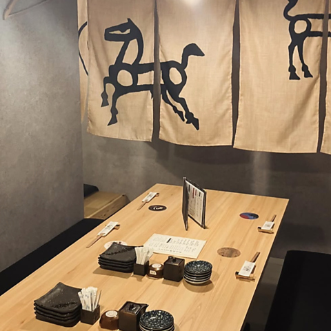 店内は、木を基調とした落ち着いた雰囲気で、日常を忘れてゆったりと寛げる空間です。接待に最適な完全個室や、グループ利用に便利なテーブル席、足を伸ばせる掘りごたつ席、さらに大切な方との語らいの場に最適な掘りごたつ式の個室席もご用意しております。幅広いシーンで、心安らぐひとときをお過ごしいただけますので、ぜひご来店ください。