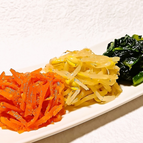 ディナータイムにご来店頂いた方にはむしろ、無料のお通しをサービスしております!!お通し代なしでむしろもらえるってすごくないですか!?内容と日に異なりますが、カクテキやもやしナムルなど韓国で親しまれているお漬物を3品ご提供しております♪これから出てくる料理を引き立ててくれる縁の下の力持ちです!