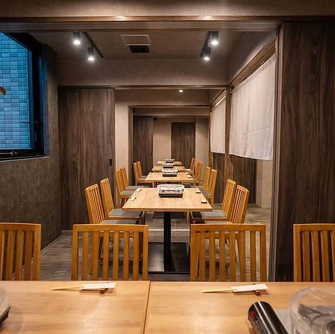 当店は、周りを気にせずゆったりとお食事を楽しんでいただける、半個室を6部屋ご用意しております。カップルやご家族でのご利用にも最適です。半個室は連結が可能となっており、最大24名様までの大人数での宴会にも柔軟に対応いたします!会社の集まりなど、幅広いシーンでご利用ください♪内観も落ち着いた雰囲気で居心地抜群です。