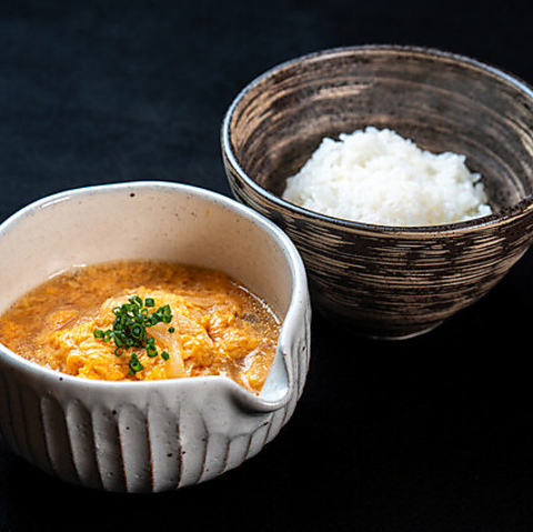 甘めに仕上げた自家製の鶏出汁とふわふわ玉子をお茶漬けみたいにかけていただく一風変わったスタイル