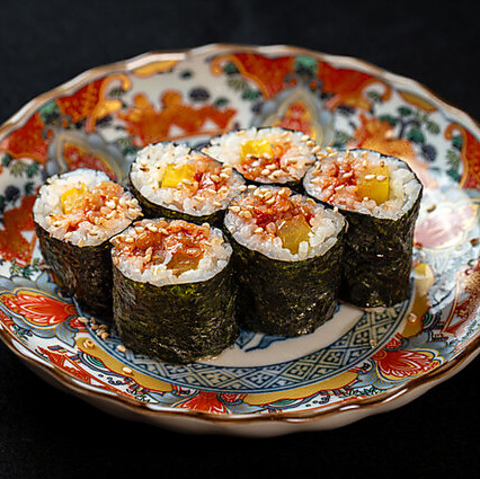 チャンジャとたくあんの巻き物。アテにも〆にもいい一品