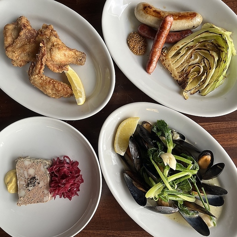 ディナータイムは呑めるパスタ居酒屋としてもお楽しみ頂けます。パテドカンパーニュ、フライドチキン、川島さんのソーセージ、ムール貝の白ワイン蒸し等の居酒屋メニューも充実してます。