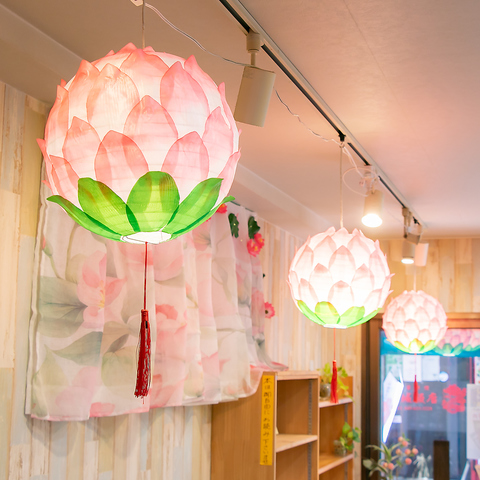 【食べ歩きの休憩タイムに♪】ピンクのかわいい蓮のちょうちんが灯る温かい空間。女子会や友人、ご家族とのカフェタイムを。本格台湾かき氷はもちろん、厳選したこだわり中国茶や体の温まるスイーツ、軽食を準備しております。おしゃれな茶器で贅沢なひとときをゆっくりお過ごしください♪