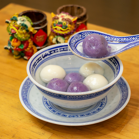 【中華街の隠れ家カフェ】中華街ならではのスイーツ、お食事メニューを準備しております!ピーナッツと黒ごまを贅沢に包んだ湯円(タンユエン)はこの時期の人気メニューの一品。もちもち食感と自然な甘み、香ばしさが広がる至福のひととき。心も体もほっこり癒される冬限定スイーツです。