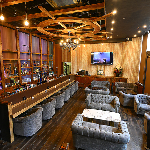 高い天井から降り注ぐ柔らかな光と、アンティーク調のインテリア。全席に配置されたふかふかのソファに身を委ね、煙をくゆらす贅沢。特に、ロフトの2階席は、プライベート感たっぷりでつい長居してしまいそう。15時のティータイムから、深夜の深い時間まで、絵になる空間が、あなたの日常を少しだけ特別に彩ります