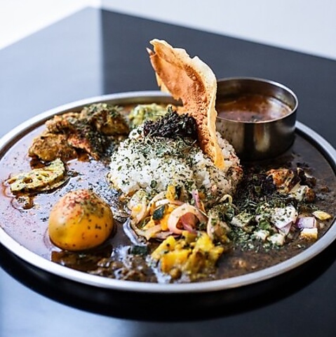 定番のチキンココナッツとキーマに加え、仕入れや季節によって内容が変わる季節の限定カレーの3種が一皿で楽しめる贅沢なメニューです。とろっとした半熟卵にスパイスを効かせたスパイスエッグやチーズなど、トッピングも豊富でボリューム満点!その日の気分や好みに合わせて、お好きな組み合わせでどうぞ♪