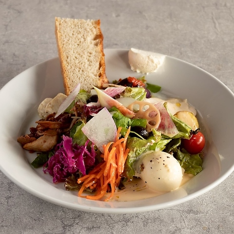 アレルギー物質特定原材料〈小麦粉、乳、卵〉使用 自家製のツナやウッフマヨネーズなど具沢山サラダプレート 旬の野菜を使用するため内容は変更致します