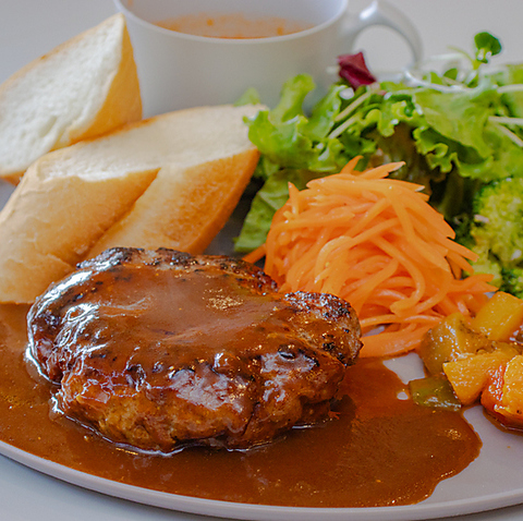 ジューシーな肉の旨みが口いっぱいに広がるROY CAFEオリジナルハンバーグ 前菜/サラダ/スープ/パンorライス付き