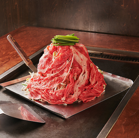 味も見た目も豪快な新名物「和牛ボルケーノ」は、ご宴会や特別なシーンを盛り上げるインパクト抜群の逸品です。新鮮な山盛りの野菜を柔らかな和牛ロースで包み込み、鉄板で蒸し焼きにして特製甘辛ダレでご提供します。200g、300g、400g(要予約)とご用意しておりますので、人数に合わせて豪快な味わいをご堪能ください♪