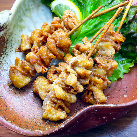 当店のこだわりが詰まった鶏料理を多数ご用意しております。醤油ベースの濃いタレに漬け込んだ「ザンギ」は、甘酢あん・タルタルなど特製たれとご一緒にお楽しみください♪塩やタレ、カレーなどお好みに合わせて8種類の味付けから選べる「手羽先串」もおすすめ◎ほかにも、チキン南蛮、ヤゲン軟骨など、お酒が進む逸品揃いです☆