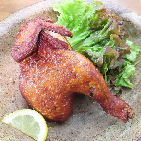 丸ごと一羽の旨味を半身に凝縮した名物「半身揚げ」は必食!秘伝のスパイスとレモンで味変も楽しめます♪