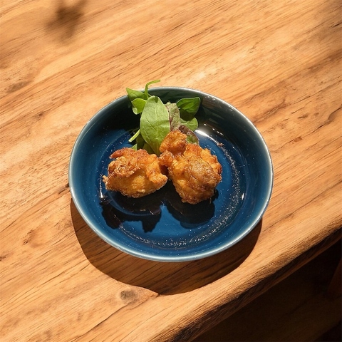 生牡蠣が苦手な店主が思考を凝らしたお手製の一品。ワイン、日本酒との相性も◎