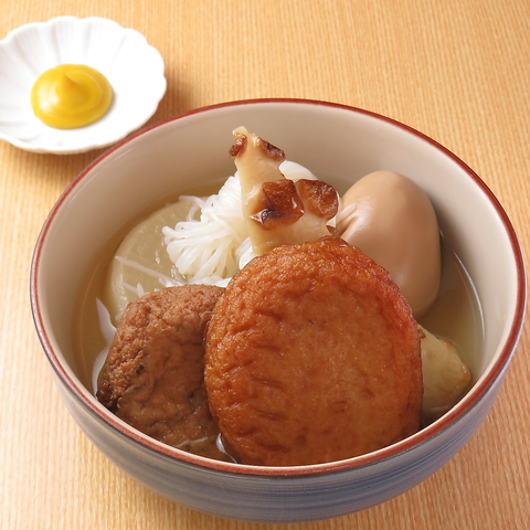 ちくわぶ 180円こんにゃく 170円がんも 180円玉子 180円大根 180円ちくわ 170円むすび白滝 170円あつあげ 170円さつま揚げ 170円はんぺん 180円おまかせ3品 450円おまかせ6品 800円