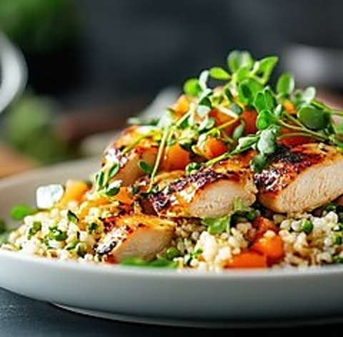 タンドリーチキンをトッピングした新鮮な野菜サラダ