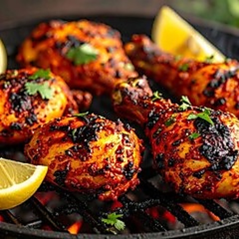 (4P)850円(税込) スパイスとヨーグルトを混ぜたどろっとしたマサラに漬け込んだ骨付きチキンを深い壺形のタンドール窯で高温で焼きあげます
