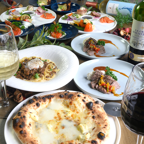 ピザやパスタのメインの他に、ドリンク&デザートのセットも追加できます♪サービスでお付けするバーニャカウダや前菜も見逃せません!会話を楽しみながらごゆっくりお寛ぎください♪