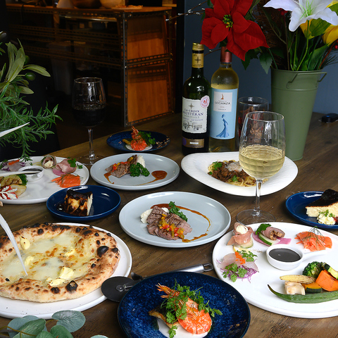 ピザやパスタのメインの他に、ドリンク&デザートのセットも追加できます♪サービスでお付けするバーニャカウダや前菜も見逃せません!会話を楽しみながらごゆっくりお寛ぎください♪