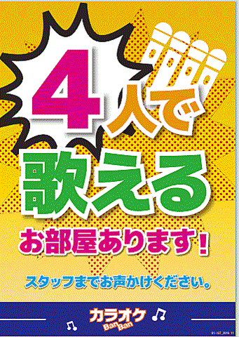 | 個室 | 3名様×12 | 4本マイク部屋多くの部屋で対応しています。 |