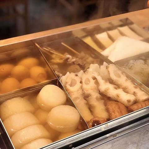 【お通しおでん盛り放題】焼きあごなど4種の節と道南昆布を使用し、店で丁寧に引いた自慢のお出汁を使用。お通しおでん盛り放題330円!じっくり食材それぞれに染み渡ったあご出汁おでんをお楽しみください♪