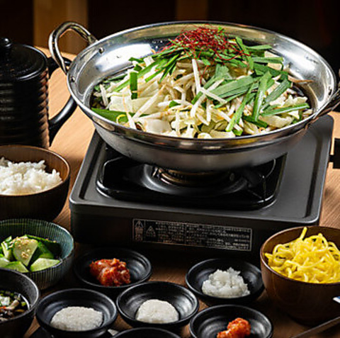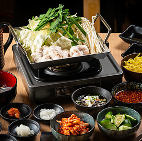 有田牛の新鮮なホルモンを味わい尽くせる「もつ鍋コース」◎スープは「醤油味・麻辣味」の2種からお好きな味を選べます。プリプリのホルモンと野菜の旨みが溶け込んだ出汁が格別です。心も体も温まる一品を、ぜひご賞味ください。こちらのコースは1738円(税込)でご提供しております。宮崎県産焼酎との相性も抜群ですよ!