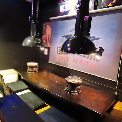 レトロモダンな雰囲気の中、ゆったりと配置されたテーブル席。排煙ダクトが特徴的で、カジュアルながらもお洒落な空間です。気の置けない仲間との飲み会やご宴会にぴったりです。