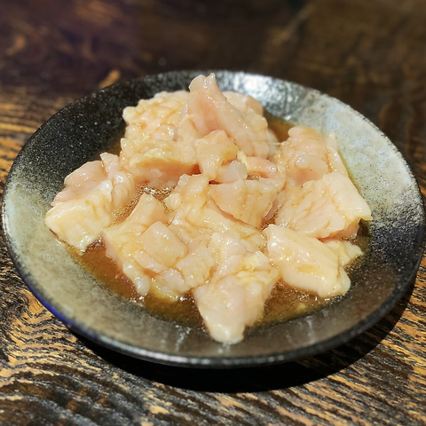 牛の第一胃袋の特に肉厚な部分を丁寧に開き、隠し包丁を入れることで、コリコリ・サクサクとした心地よい食感を実現。噛むほどに旨味が広がります。