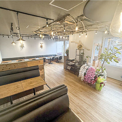店内は、木の温もりあふれる家具と、優しい色合いのドライフラワーが飾られたナチュラルな雰囲気です。ゆったりと配置された席で、時間を忘れリラックスしていただけます。ご友人やご家族とのランチ、ママ会、カフェタイムなど、幅広いシーンでご利用ください♪落ち着いた空間で会話も弾みます◎
