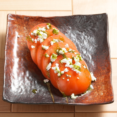 誰もが愛する定番の美味しさ!甘酸っぱい完熟トマトと、とろけるチーズが織りなす「トマトチーズ焼き」。熱々を頬張れば、トマトの酸味とチーズのコク、香ばしさが口いっぱいに広がります。