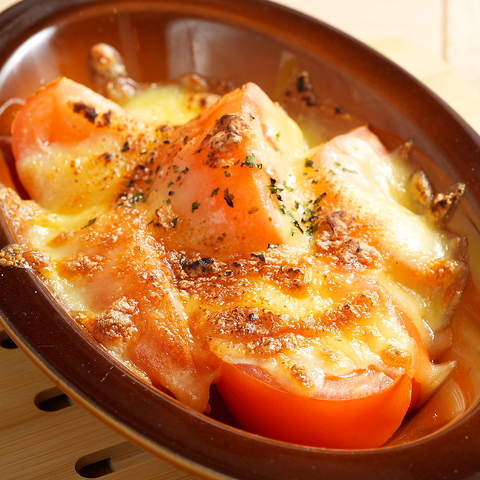 誰もが愛する定番の美味しさ!甘酸っぱい完熟トマトと、とろけるチーズが織りなす「トマトチーズ焼き」。熱々を頬張れば、トマトの酸味とチーズのコク、香ばしさが口いっぱいに広がります。