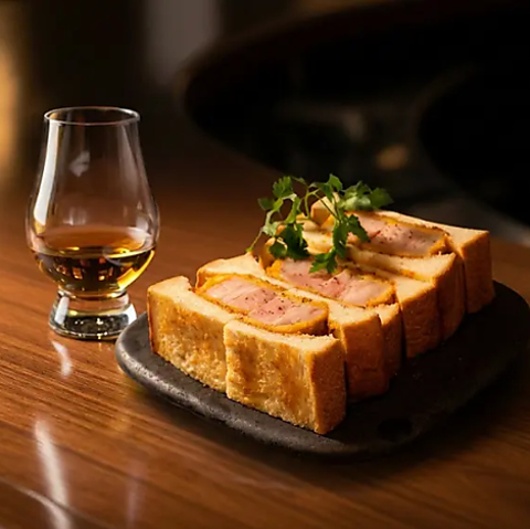 さっくりと焼き上げたパンに挟まれた、肉厚でやわらかなカツ。香ばしい衣と特製ソースの香りが広がる、The Nikka Bar自慢のカツサンド。ウイスキーとの相性も抜群です。