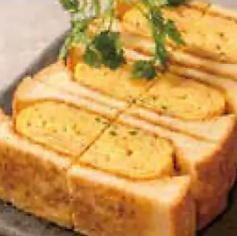 ふんわり甘く焼き上げた厚焼き玉子を、しっとりとしたパンで優しく挟んだ贅沢なサンド。玉子のやさしい甘みと出汁の旨みが広がる、ほっとする味わいの一品です。