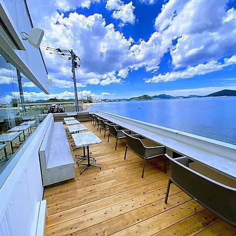 オーシャンビューとリゾート空間◎全席から海が一望できる、九州最大級のシーサイドレストランです♪白を基調としたモダンな建物は、まるで異国のリゾート地を訪れたような非日常感を演出します。180度に広がる海を見ながら、優雅なひとときをお過ごしいただけます◎ランチ・ディナー・アフタヌンティーなど、幅広いシーンにぴったりです!