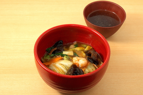 野菜や海鮮、豚肉など具材たっぷりの中華あんを、熱々ご飯にかけました。旨みと香りが広がる、定番人気の中華丼です