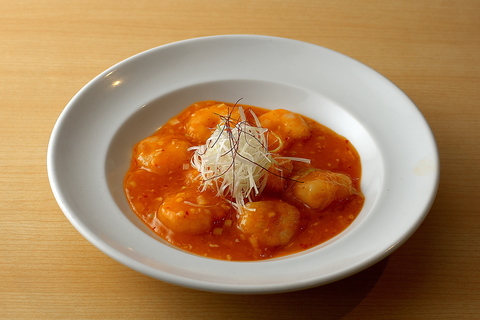 プリプリ海老を香り高いチリソースで丁寧に仕上げました。辛さと甘みのバランスが絶妙で、上質な味わいのエビチリ定食です。