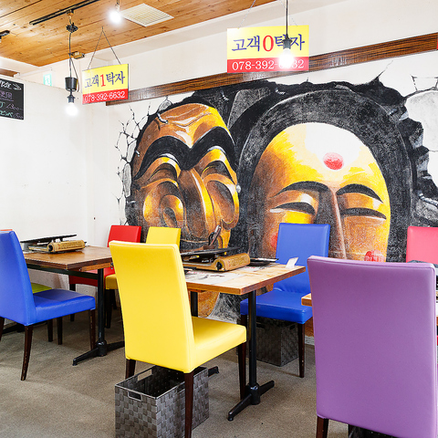 阪急神戸三宮駅から徒歩4分、JR三ノ宮駅からも徒歩6分とアクセス抜群の好立地です◎ 賑やかな韓国の雰囲気を感じられるカラフルな空間は、普段使いはもちろん、デートや女子会にもおすすめ!おしゃれな内観で本場韓国の雰囲気をお楽しみください。