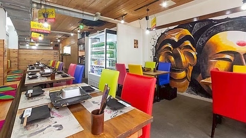 韓国の食堂をイメージした明るい店内は、カラフルなインテリアが目を惹く“映える”デザイン♪女子会や気の置けない仲間との飲み会にぜひ♪