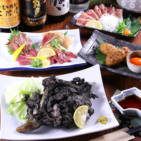 炭火焼や刺身を囲んで自然と会話が弾む宴会時間。仲間とゆっくり楽しめる地鶏料理が揃っています。