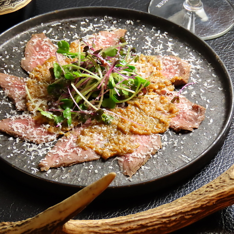 低温調理でじっくり火を入れた鹿の外腿肉を山椒のソースと一緒に、おすすめ商品です