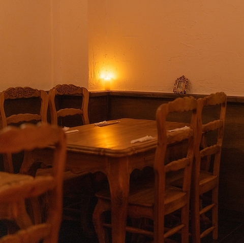 落ち着いた雰囲気の店内には、ゆったりとした4名掛けテーブルが3卓、2名掛けテーブルも3卓ご用意。少人数の食事や友人との集まり、デートにも最適で、周囲を気にせず会話と料理を楽しめるプライベート感あふれる空間です。
